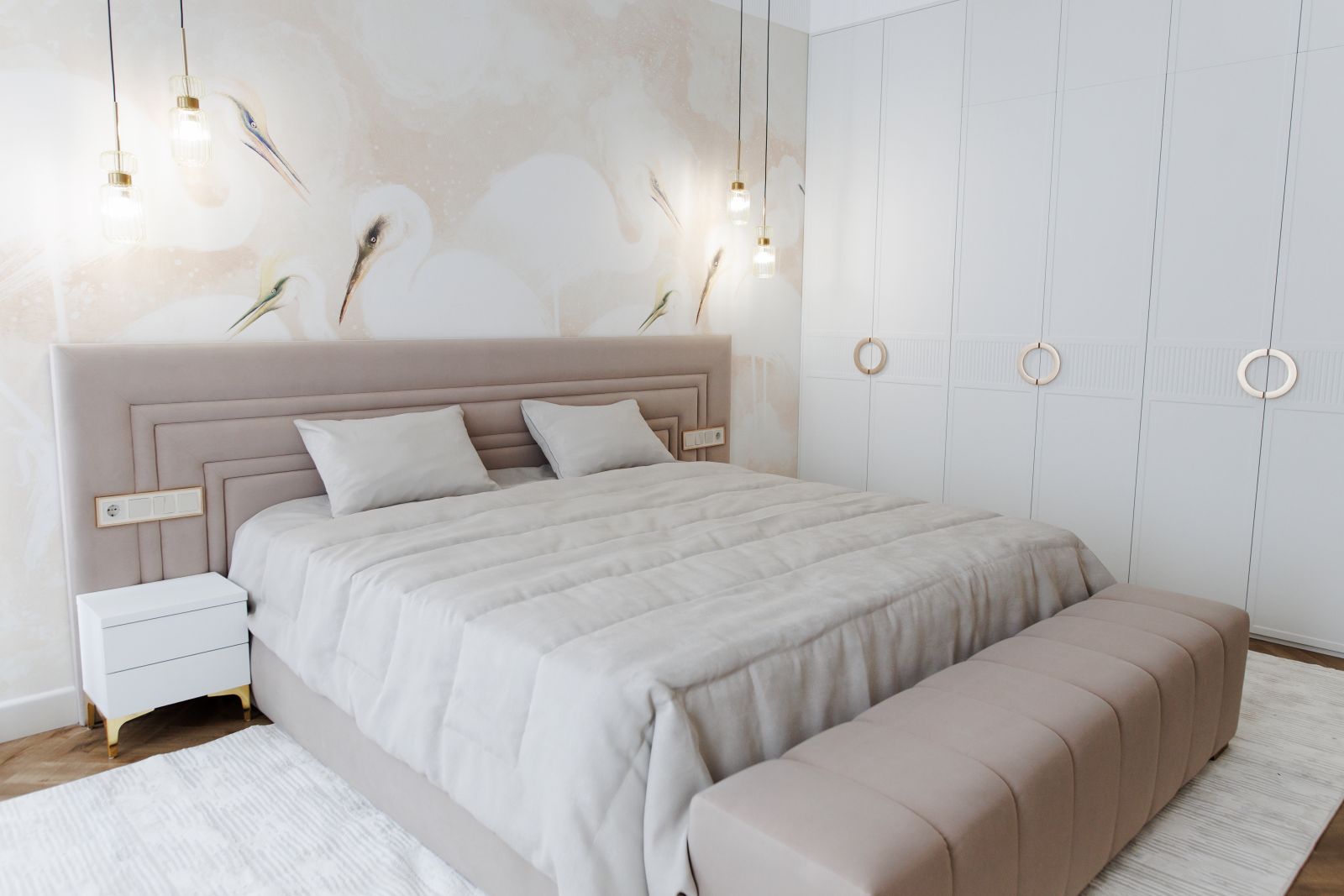 Эти грациозные птицы издревле ассоциируются с умиротворением и чистотой. Их присутствие в интерьере спальни помогает создать идеальное пространство для отдыха и восстановления сил!