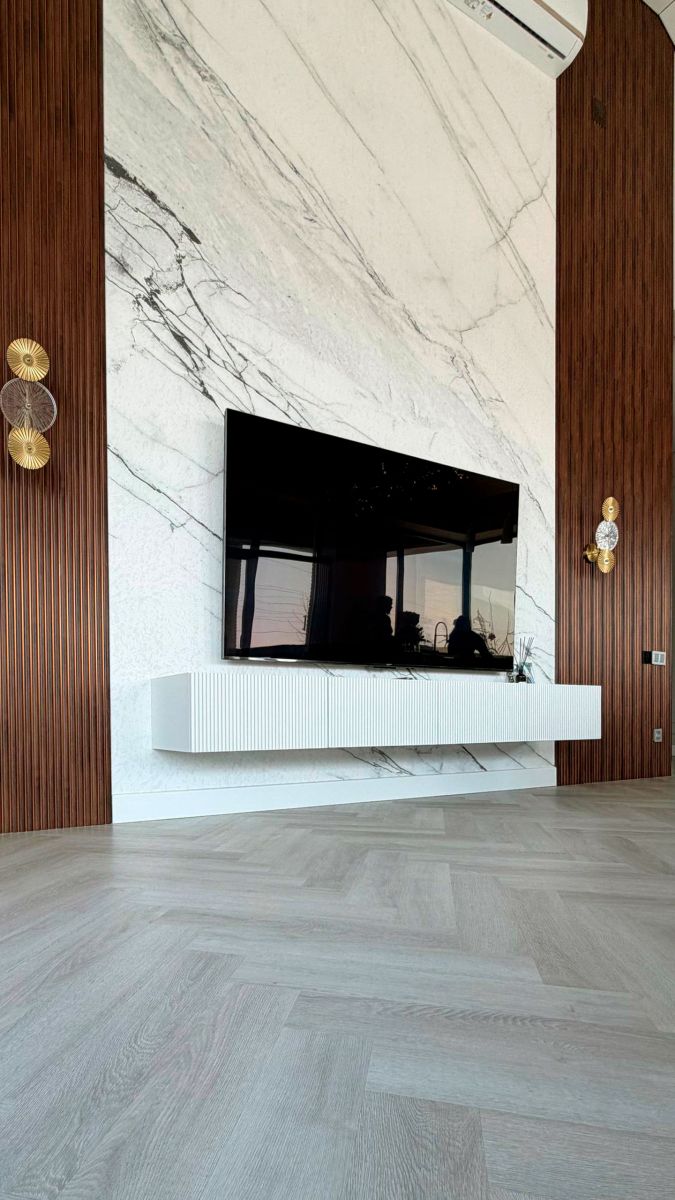 Перед вами отличный пример: наши клиенты оформили интерьер с помощью ЭКО фрески с лаконичным мраморным узором (Арт. 34601) от ОРТОГРАФ. Казалось бы, простой и сдержанный дизайн, но именно он задаёт тон всему пространству: элегантность, лёгкость и глубина одновременно. Такой подход доказывает, что вдохновение можно найти в минимализме и естественных текстурах!