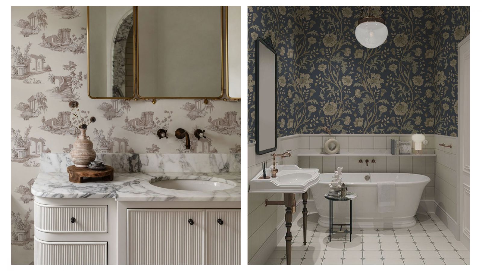 Даже в ванной комнате можно создать свой собственный уголок Парижа. Идеально, если в ванной комнате есть окно. Если же нет, то позаботьтесь о хорошем освещении. Не бойтесь повесить в этом помещении большую люстру, настенные светильники. Стены лучше всего оставить светлыми или же оформить влагостойкими обоями. На полу - керамическая плитка или керамогранит с узором. Избегайте тёмных полов. Сама ванна должна быть белоснежной, на высоких изящных ножках. По возможности не закрывайте их экраном. Обязательно повесьте большое зеркало в позолоченной раме. Ручки шкафчиков, крючки для полотенец лучше выбрать стилизованные.