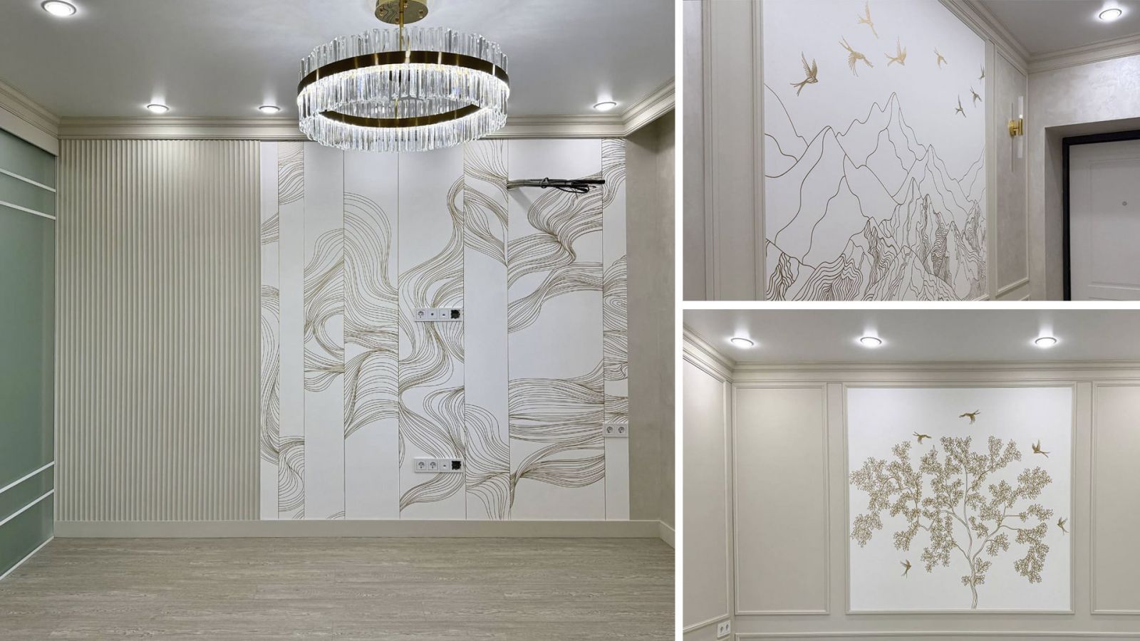 Однозначно, этот проект по праву заслуживает звания «Самого блестящего»! И знаете почему? Потому что здесь гармонично сочетаются сразу три сюжета  (Арт. 90007, 90012, 90017) из нашей дизайнерской коллекции «Elegance».
