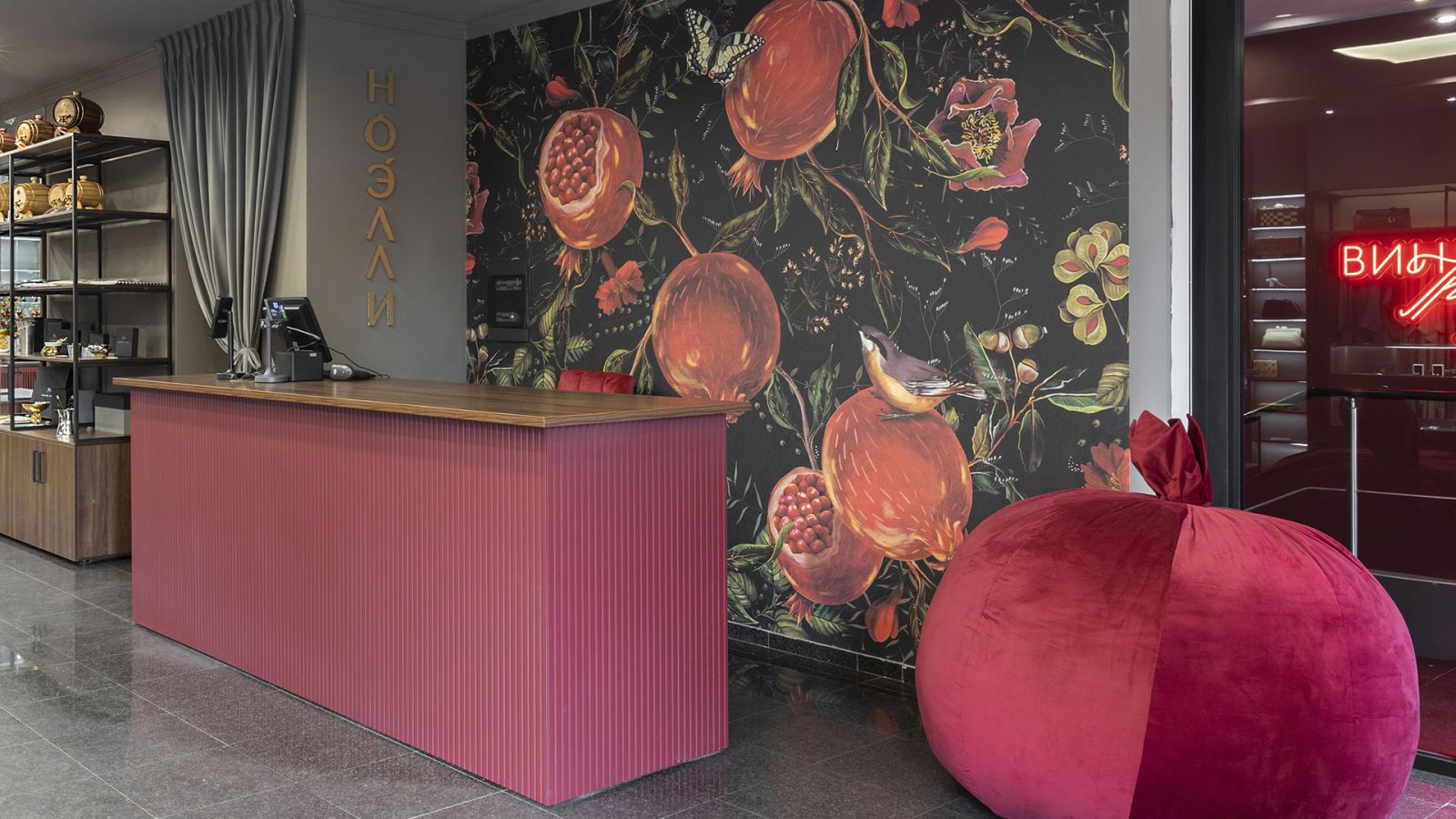 В самарском этно-бутике «Ноэлли» фруктовый сюжет (Арт. 35110) из нашей дизайнерской коллекции «Enjoy» стал настоящим акцентом, создав атмосферу изобилия и гостеприимства. Его насыщенные, сочные цвета и выразительный рисунок с гранатами придали пространству неповторимый колорит!