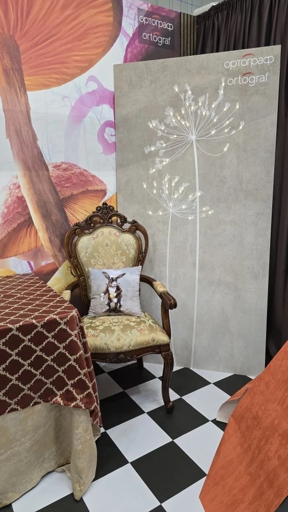 С 17 по 19 апреля в спортивном комплексе «Муссон» г. Севастополь проходит масштабная выставка, посвященная всему, что делает ваш интерьер по-настоящему уютным! Среди участников - наши партнеры, салон «Мир обоев». На их стенде вы сможете увидеть и оценить нашу ЭКО продукцию, в том числе обои со встроенными светодиодами от ОРТОГРАФ, которые  мы предоставили для оформления их экспозиции.